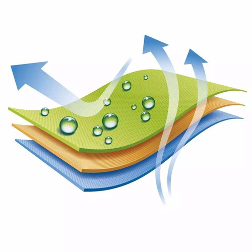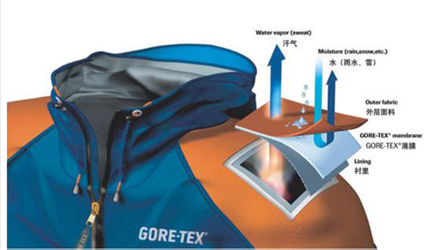 美國高爾公司的一和荷公司的是目前公認(rèn)的“防水透濕”代表產(chǎn)品。一薄膜主要是由聚四氟乙烯以下簡稱雙向拉伸微孔薄膜構(gòu)成,厚約拜,開孔率為,孔徑為拜,約為水滴的,比水蒸汽分子大倍,其耐水壓可達(dá),透濕量大于,·,透氣量小于“·,因而具有良好的防水、透濕、防風(fēng)功能。薄膜是由親水的聚醋嵌段高聚物制成的沒有微孔的實心體,厚度僅為如,具有重量輕,手感柔軟和水蒸汽由里向外擴(kuò)散距離短等優(yōu)點(diǎn)。用在運(yùn)動服和休閑服上是強(qiáng)勁的,而一在戶外及惡劣氣候服裝上能滿足更多要求。