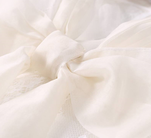 真絲歐根紗布質(zhì)偏硬且堅挺,據(jù)此特性常用它來制作婚紗禮服等高端工作裝,間或也會看到用歐根紗來制作一些時裝或者工作裝的配飾。